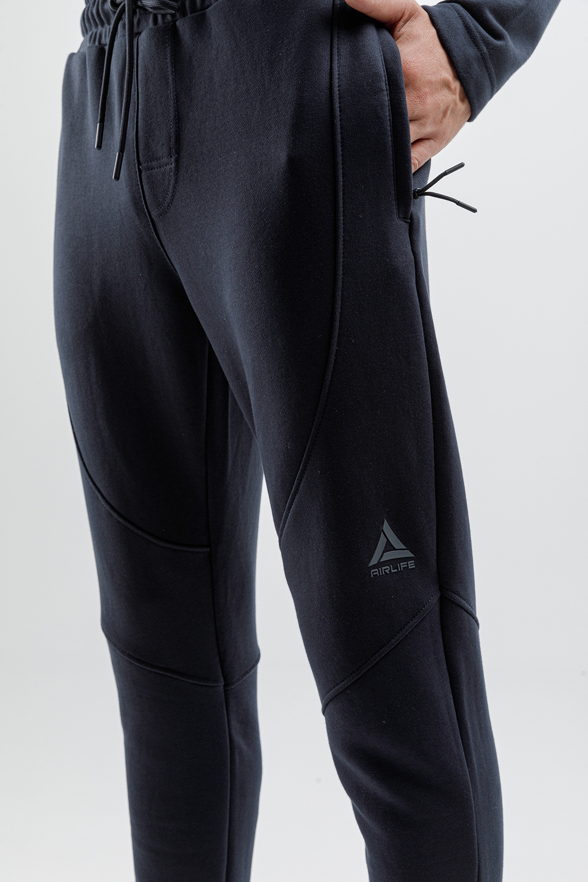 Introducing the AIRLIFE 150070-M.02-6-Navy Blue men's lightweight wool-lined slim sweatpants from the new season collection. These pants offer a stylish and modern look with their slim, tapered leg design. The wool lining ensures warmth and comfort even on the coldest days, making them perfect for various activities. Designed for both style and functionality, these sweatpants are an essential addition to your wardrobe.