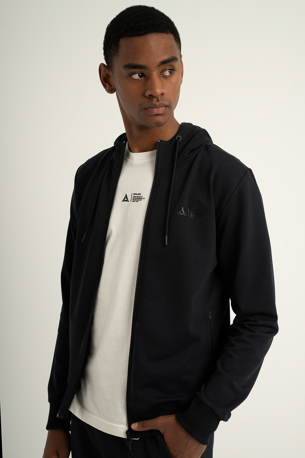 The AIRLIFE 180028-M.02-6-Navy Blue Men's Sweatshirt, with its hooded and zippered design, is perfect for the new season. Made from high-quality fabric, it offers lasting comfort and durability. This versatile garment seamlessly combines style with functionality, making it an essential addition to your wardrobe.