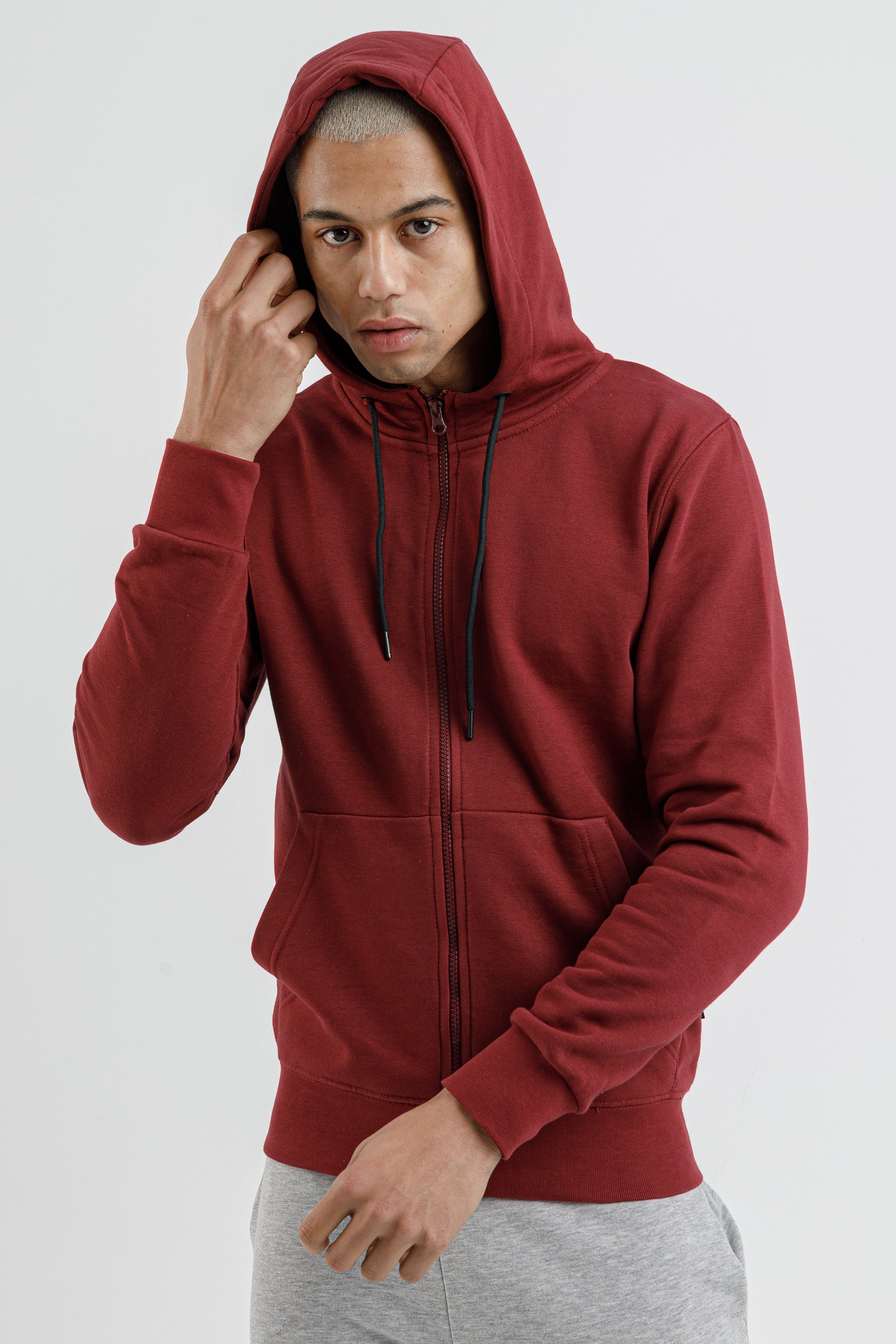 Introducing the AIRLIFE Men's Hooded Full-Zip Sweatshirt in burgundy, a must-have for the new season. This regular-fit sweatshirt combines comfort with style, making it perfect for daily wear. Crafted from high-quality fabric, it ensures durability and long-lasting wear. The full-zip feature and hood add practicality while enhancing your modern wardrobe.