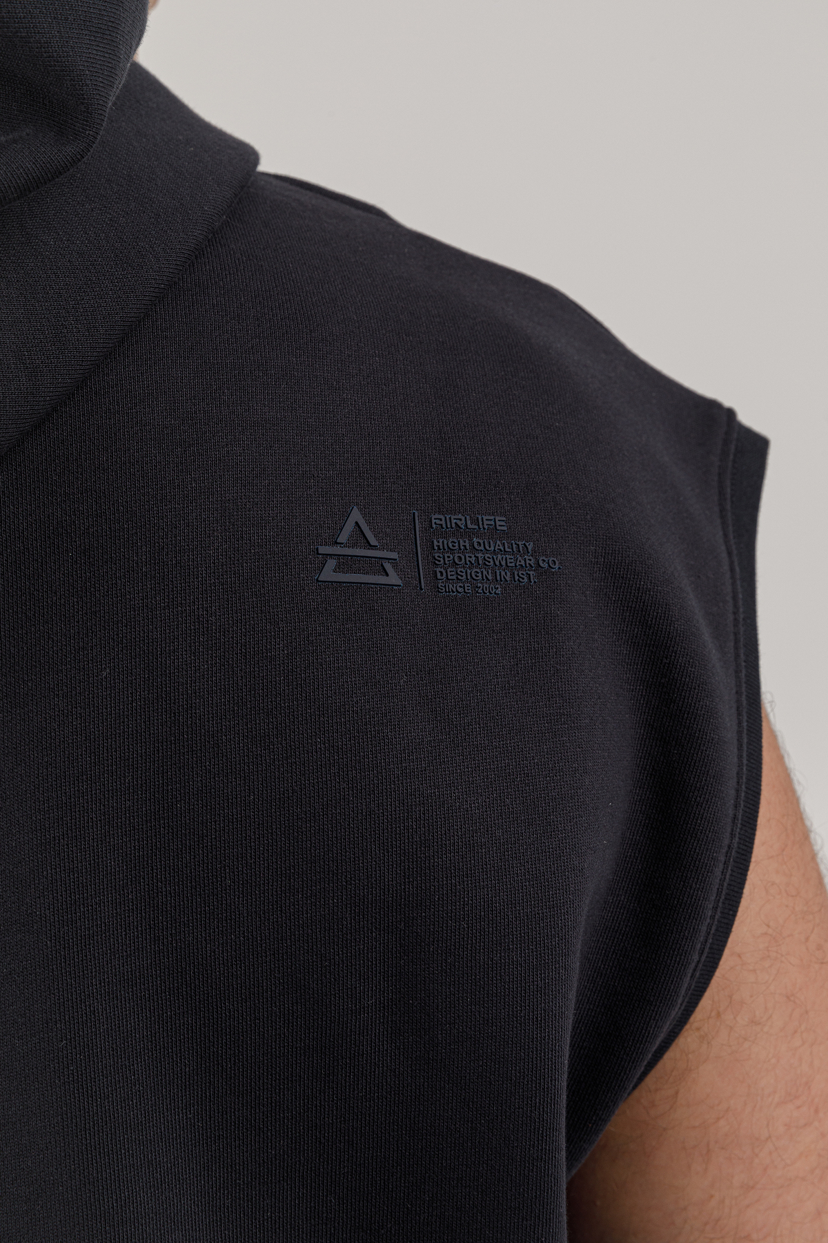 Designed by AIRLIFE, this navy blue men's sleeveless and hooded sweatshirt reflects the latest seasonal trends. Offering a comfortable experience with its regular fit, the hooded design provides ease of use in all weather conditions. The quality of the fabric and the craftsmanship in the stitching make it ideal for long-term use.