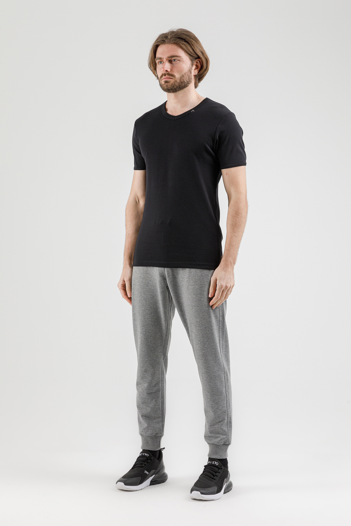 Introducing the AIRLIFE 190034-M.02-6-Black Men's Stretch V-Neck T-Shirt, a staple for the new season. Designed for comfort and style, this regular fit t-shirt combines functionality with elegance. Its stretch fabric ensures all-day comfort, making it a perfect choice for stylish men.