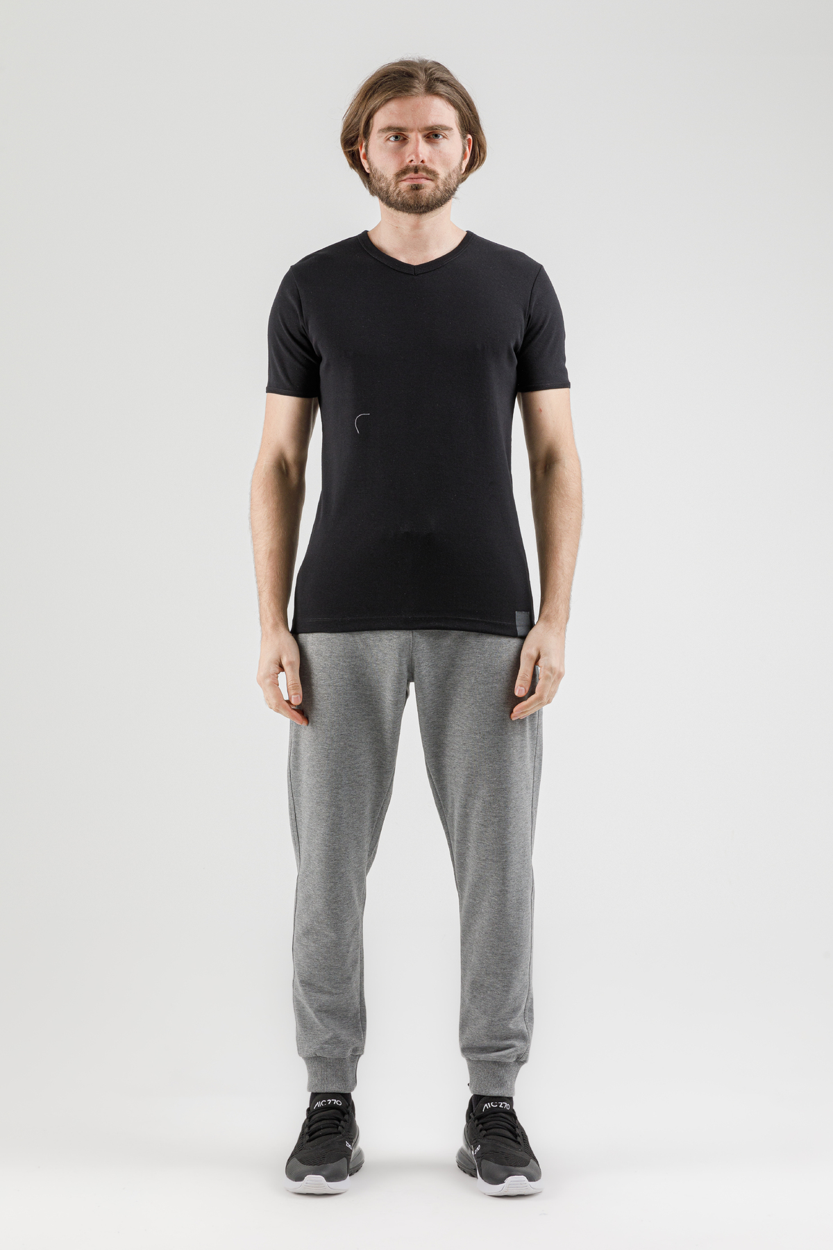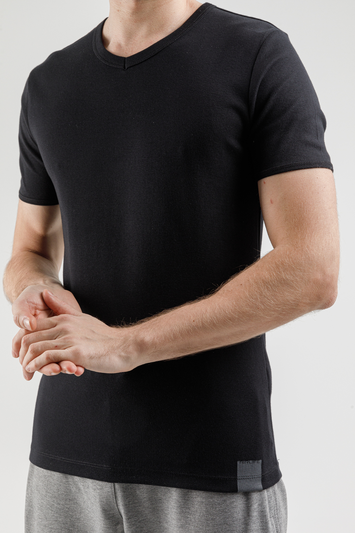 Introducing the AIRLIFE 190036-M.02-6-Black V-Neck Flexible Men's T-Shirt from the new season collection, a perfect blend of style and comfort. This t-shirt, with its regular fit and flexible fabric, promises day-long comfort and durability. The classic black hue complements various outfits, making it a versatile addition to any man's wardrobe. Essential for those who value both style and comfort in men's wear.