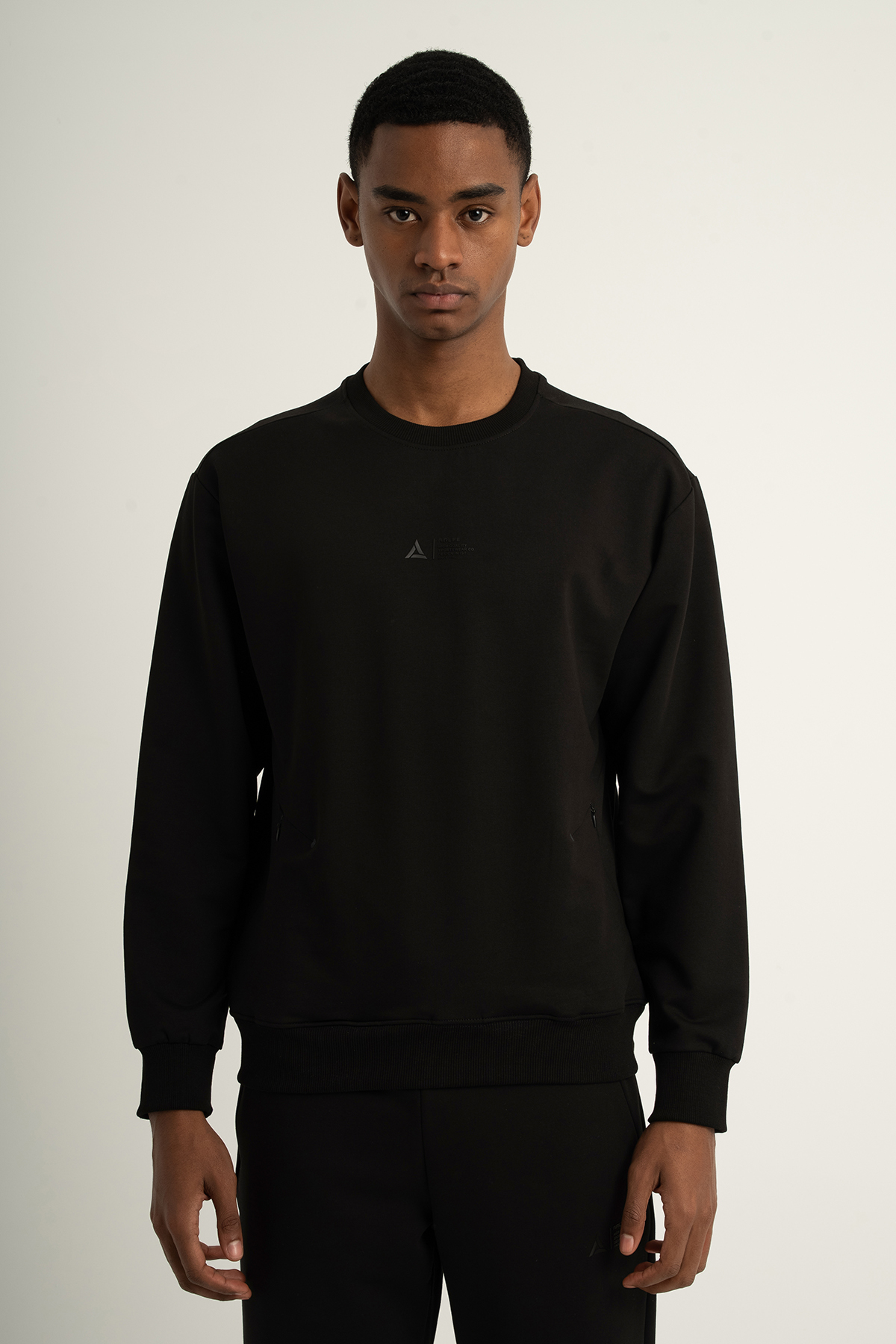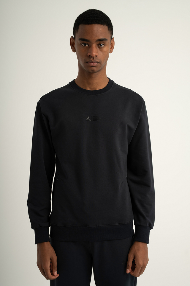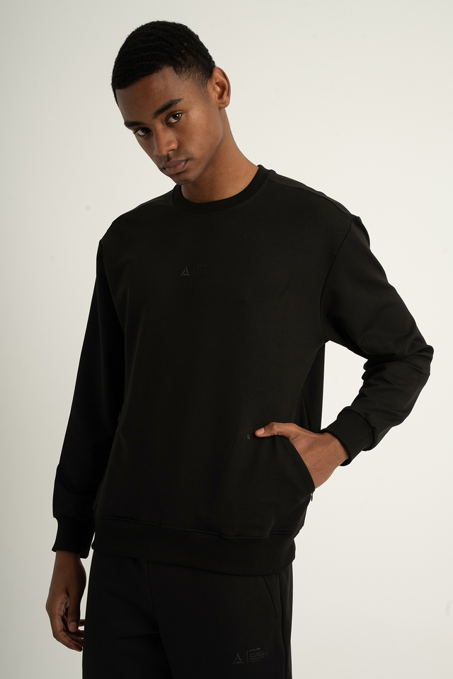 Erkek Sıfır Yakalı Sweatshirt Siyah